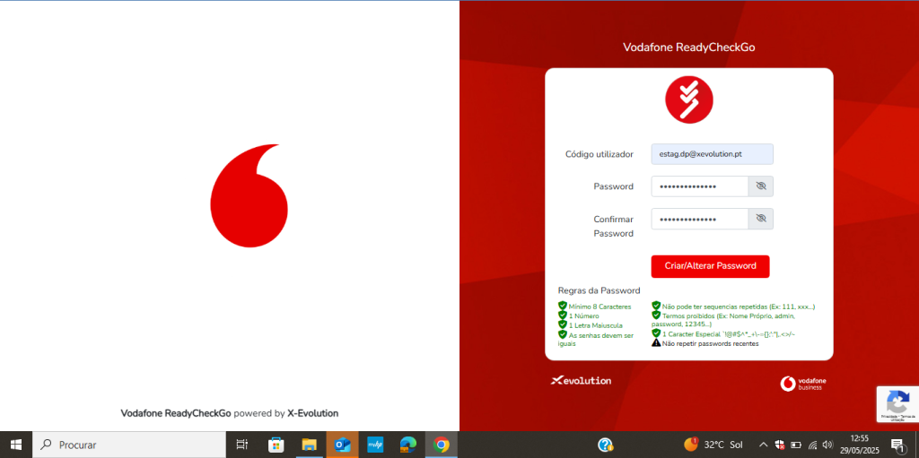 Em seguida coloque o seu email e a sua nova palavra passe , para conseguir resetar ira ter que realizar os seguintes requisitos que aparecem na parte de baixo.